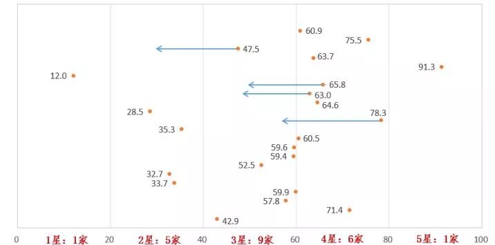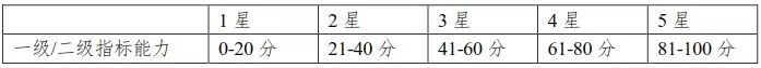 一级指标和二级指标的单项能力评估分值和星级对应原则如下: