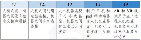生产资源连接是指生产现场的人与机器、机器与机器之间通过电脑、移动交互界面、互联网、AR(增强现实)与 VR(虚拟现实)技术等手段实现互连接、互感知、互操作。能力等级如下: