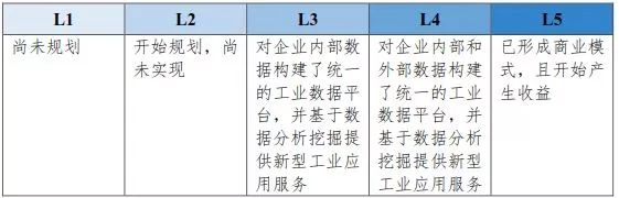 在数据分析利用要素中,主要评估企业的数据库、知识库建设情况,以及企业基于数据建模、分析和挖掘是否形成了自反馈、自优化、自决策的机制,是否衍生出了创新的业务模式。
