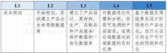 产品全生命周期优化是指从客户对产品的需求开始,从产品设计到产品淘汰报废的全部生命历程中,企业通过各环节数据的采集、分析、建模、仿真、反馈等预测产品生产可行性、实时跟踪产品质量、有效进行产品功能和性能创新。能力等级如下: