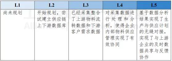供应链优化是指对供应链上游物料流转数据、供应链下游客户需求数据(包括个性化需求)进行采集和分析,并将分析结果及时反馈给供应链上游企业,实现供应链上下游数据共享和反馈协作。能力等级如下: