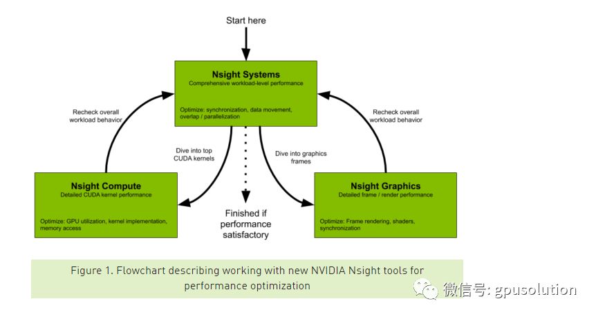 NVIDIA Visual Profiler既跟踪(CUDA API和GPU活动),又剖析文件(CUDA内核)。为了扩展跟踪活动以包含更广泛的系统性能数据,将跟踪活动拆分为自己的产品是必要的,因为它越来越偏离了CUDA内核概要。例如,系统跟踪对具有过多开销的系统扰动很敏感,而内核分析需要重新运行和其他高开销的数据收集技术,这些技术需要在相同的位置使用更复杂的逻辑。Nsight Systerm现在可以专注于最小化系统分析的开销,而Nsight Compute 则专注于精确的重放机制。