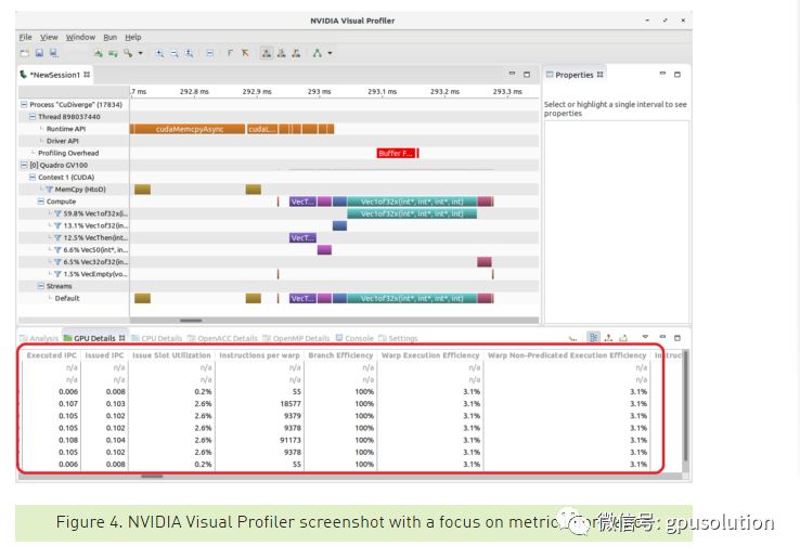 图4显示了当您查看NVIDIA Visual Profiler中的指标时,数据通常是如何显示的。