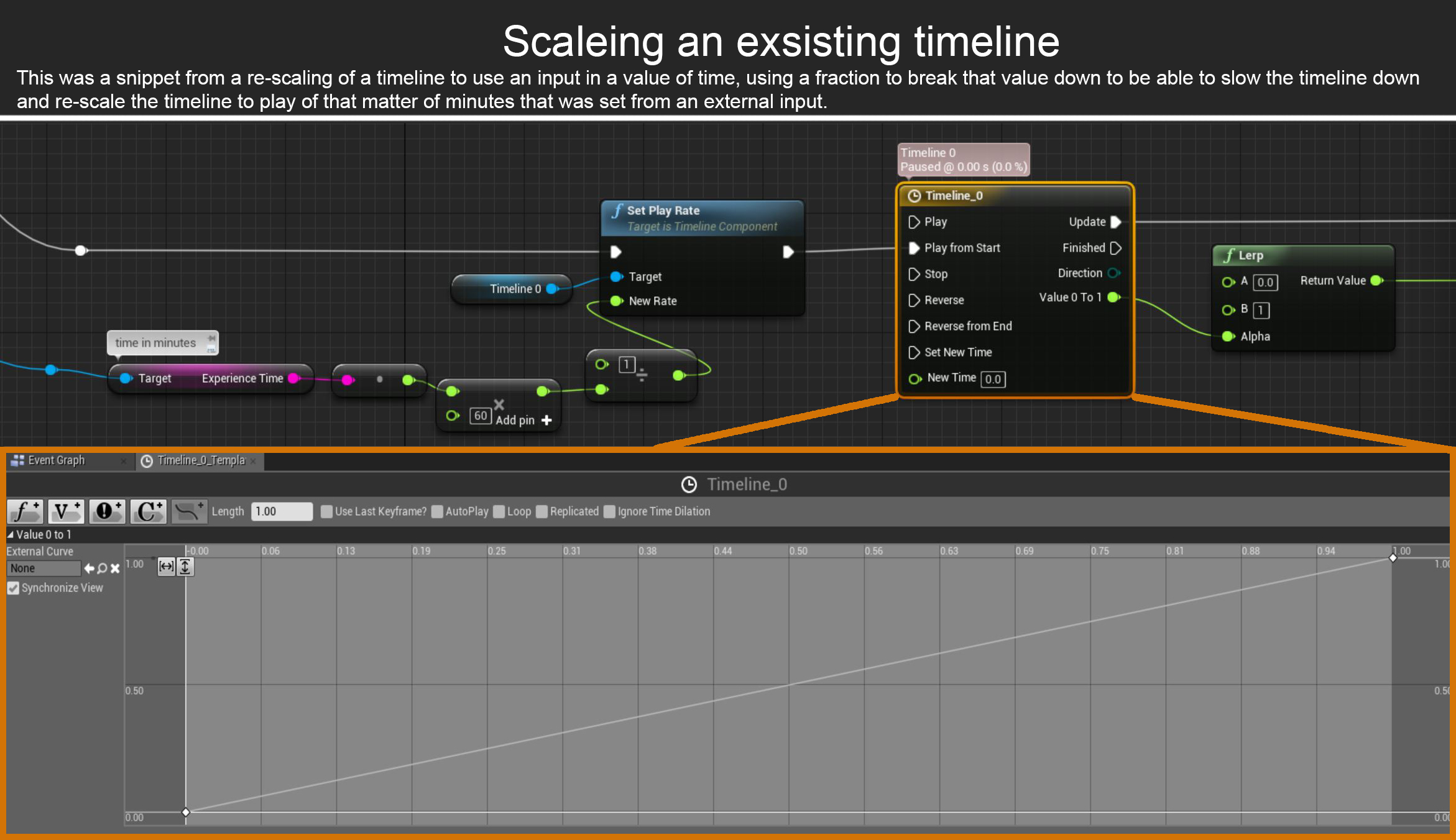 具体查看这个连接:How to change timeline duration and have updates relate to new time? - Blueprint Visual Scripting - Unreal Engine Forums