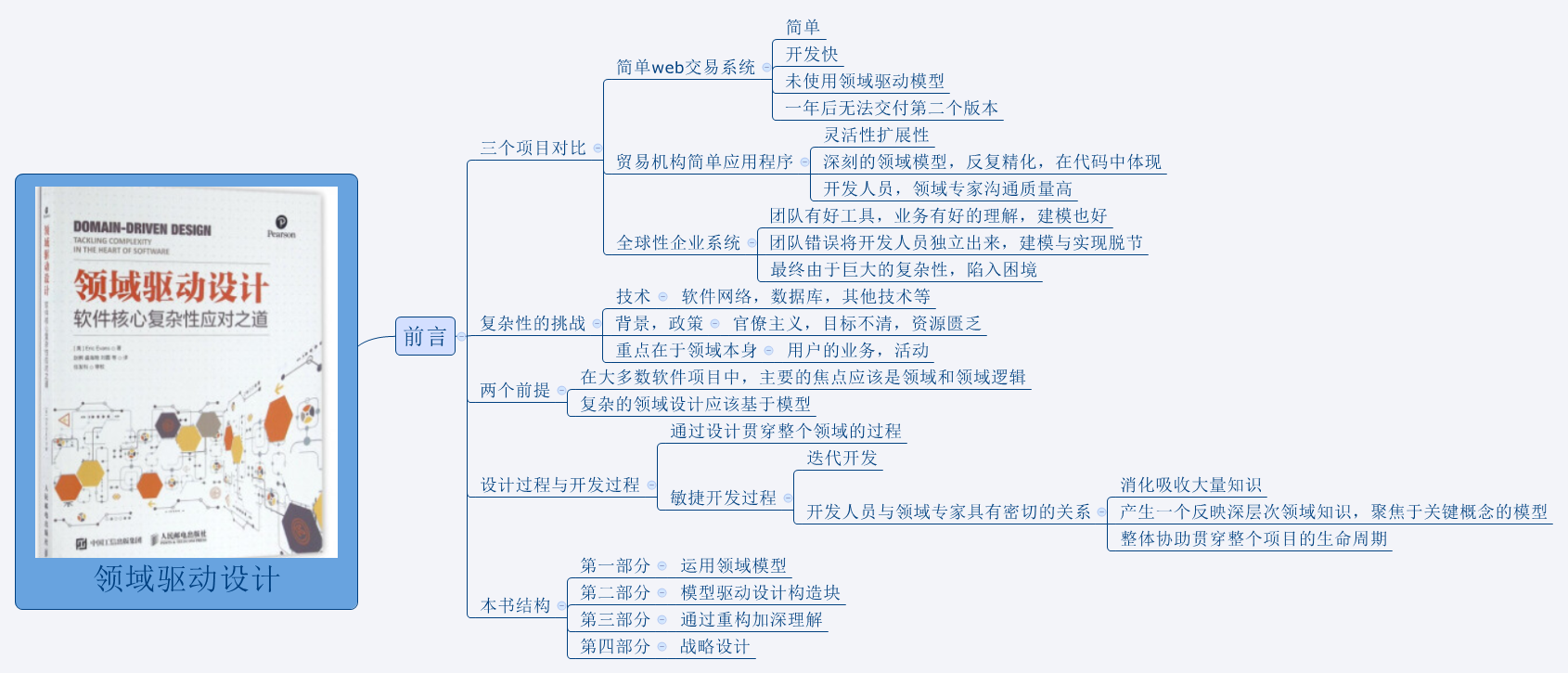 好了,开始进入正题。下面是我读的《领域驱动设计》的前言的读书笔记思维导图。我先通过图片的形式上传上来。