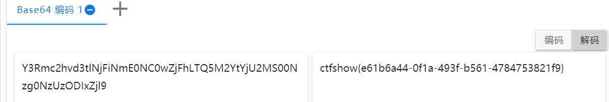 3.打开之久,你会发现一个解码,尝试着用base64解码,然后发现解出来一个flag,就是答案。