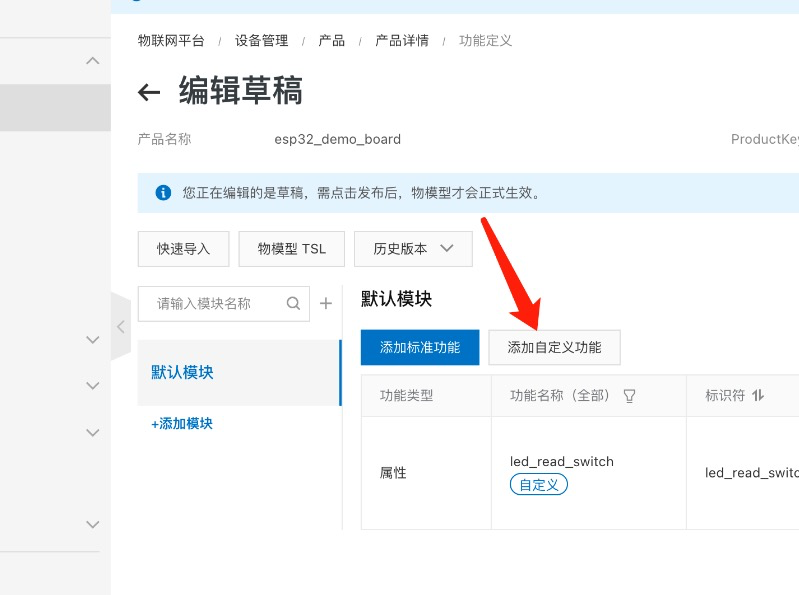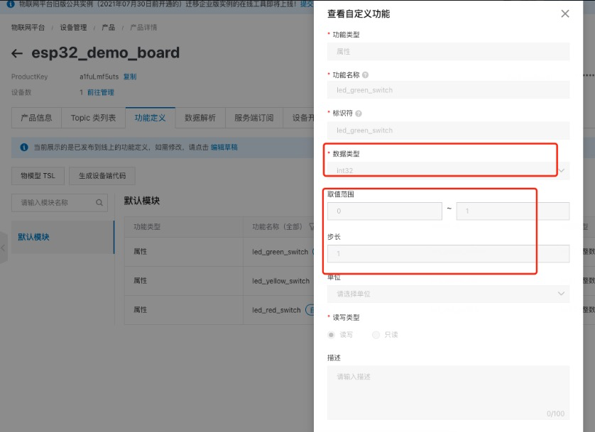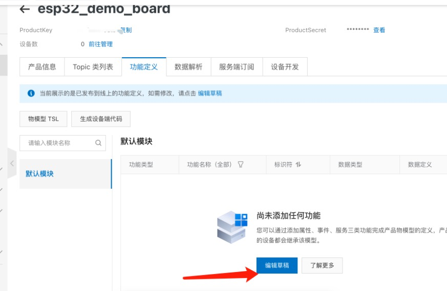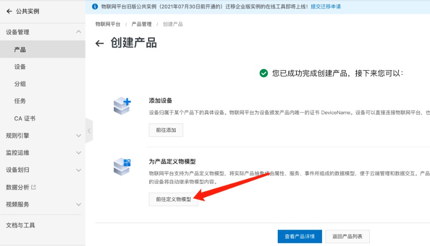 完成产品创建后,进行产品物模型的定义