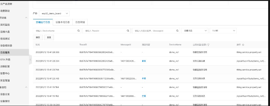 按照业务需要,将要传送的数据拼接好后。使用device.postProps进行上报即可。所有的上报或者下发数据,都可以在日志服务当中查看。