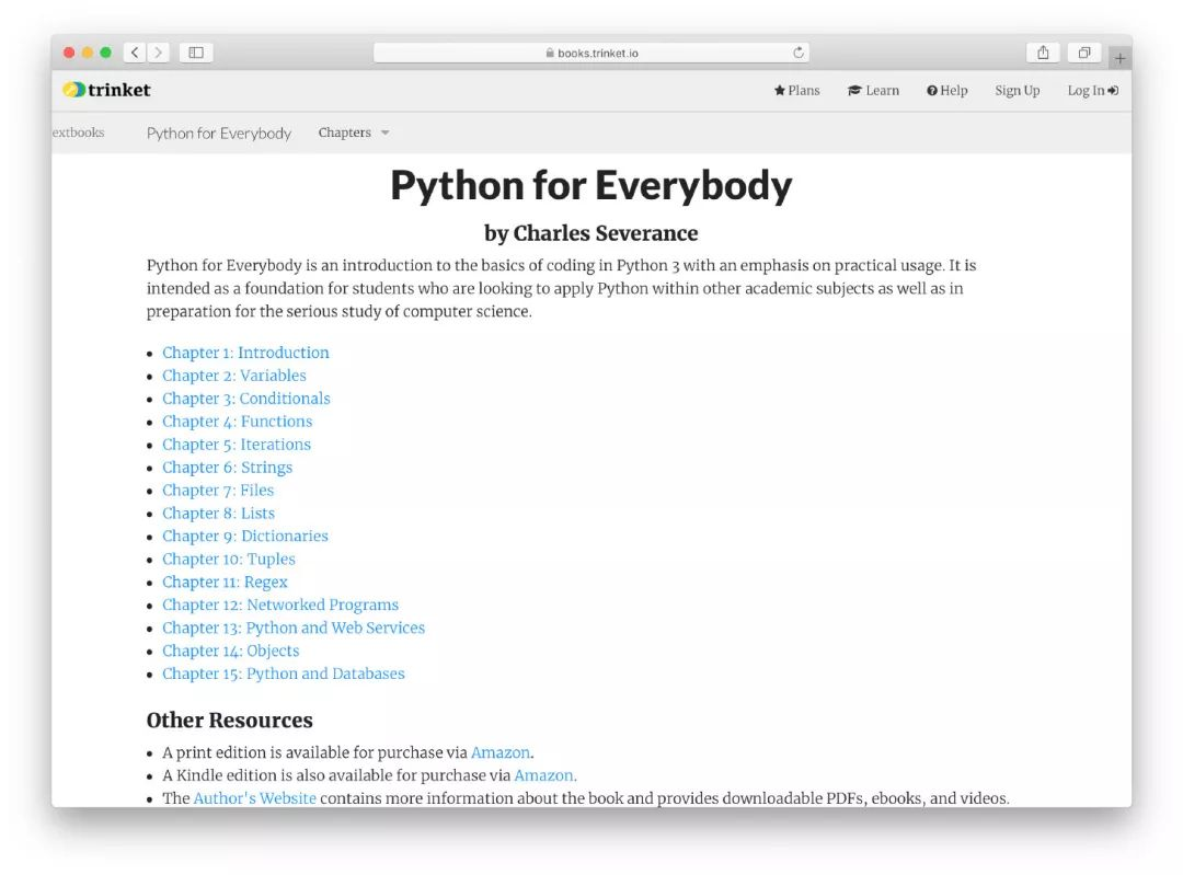 一本免费的 Python 教程,作者是美国计算机科学家,兼密歇根大学教授 Charles Severance,在国外知名教育平台 Coursera 上面开放过多份新手入门教程。