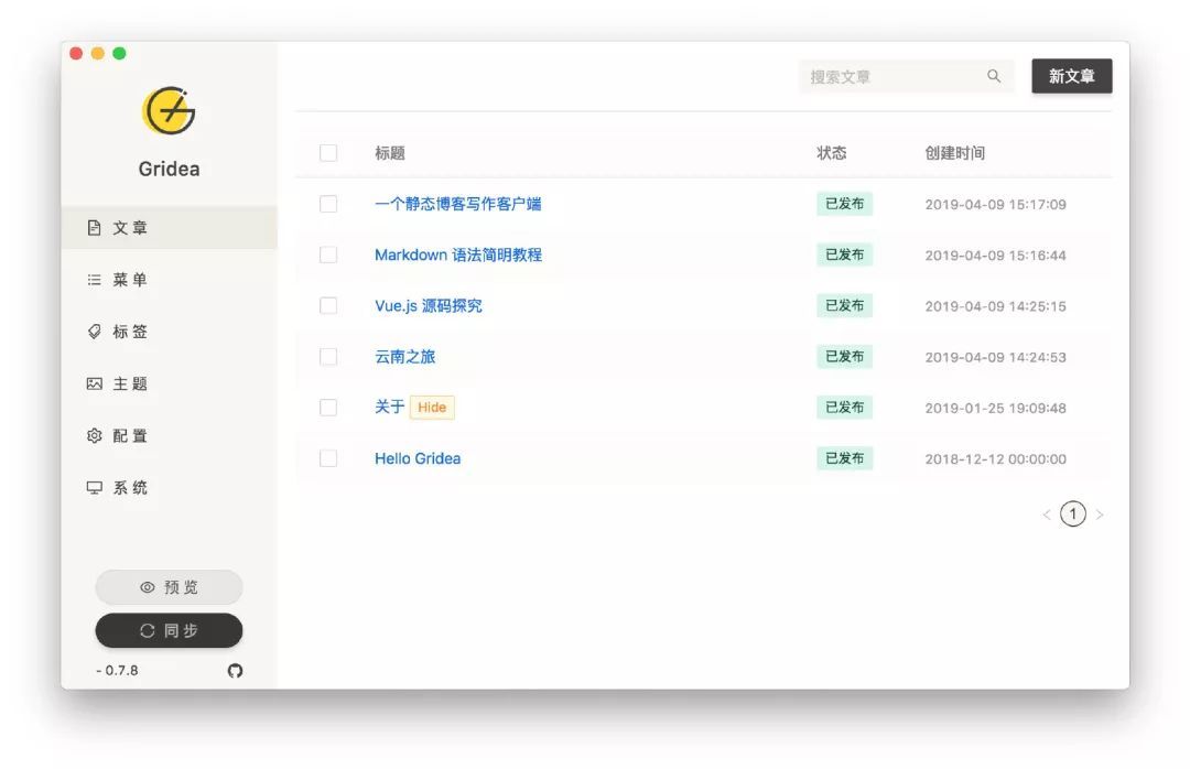一个静态博客写作客户端,支持对文章进行标签分组,可自定义主题,有多设备同步等功能,可运行在 macOS 和 Windows 平台上。