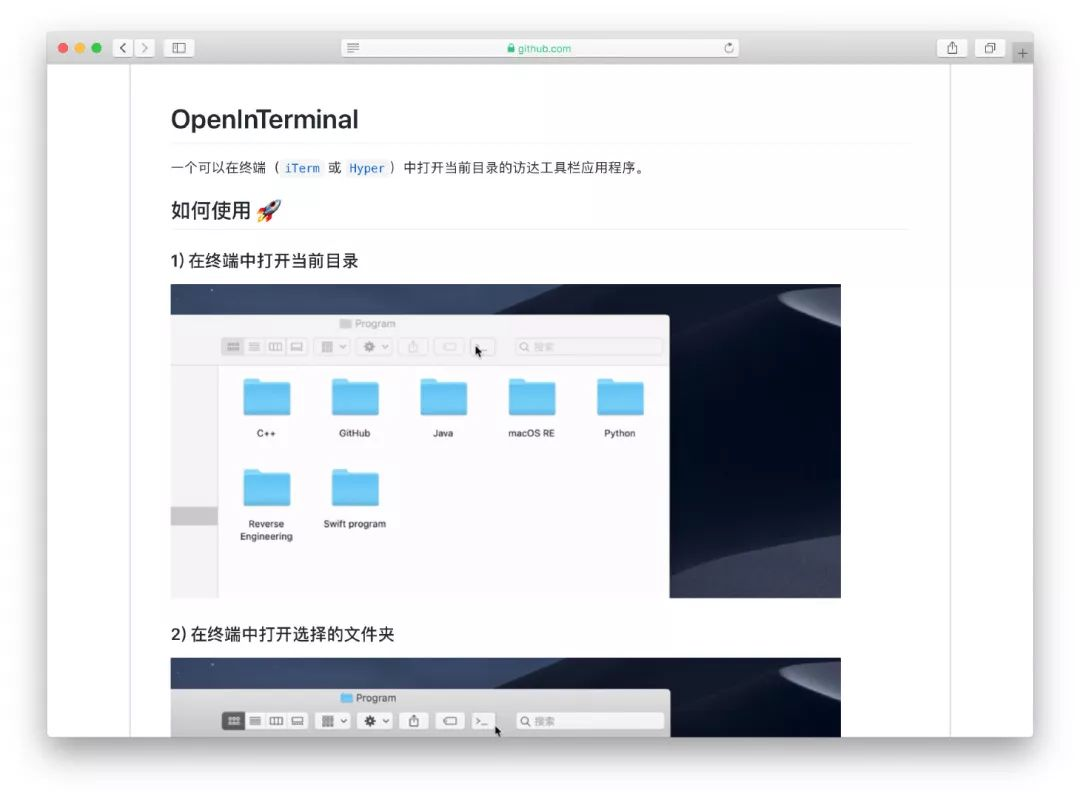 一款支持一键在终端中打开当前目录或选中目录的 Mac 小工具。