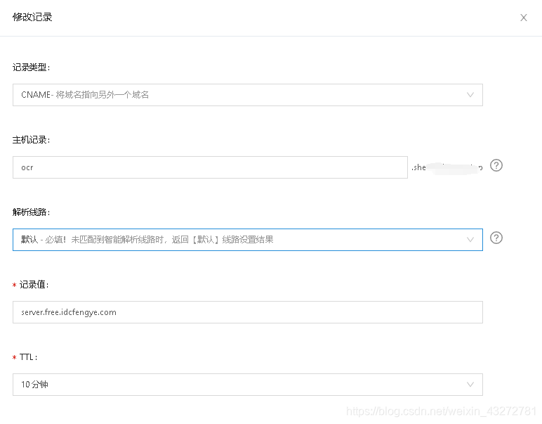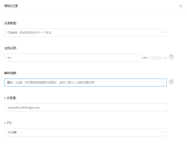 CNAME解析,域名到服务器 server.free.idcfengye.com