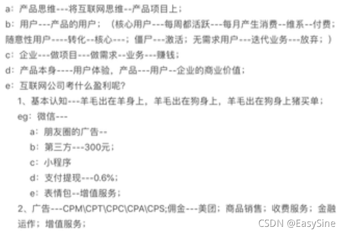 - 用户思维:产品的本质就是用户需求;0-1---冷启动