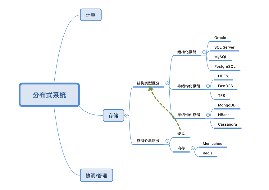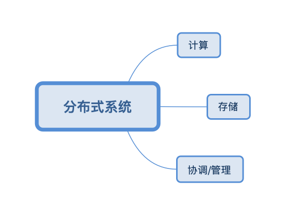 假如,我们经过一番了解之后,确定了分布式系统的“主干”是传统计算机“主干”的延伸,也分为存储和计算,但是多了一个协调和管理方向。