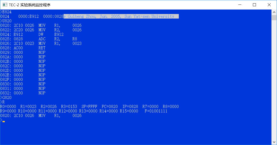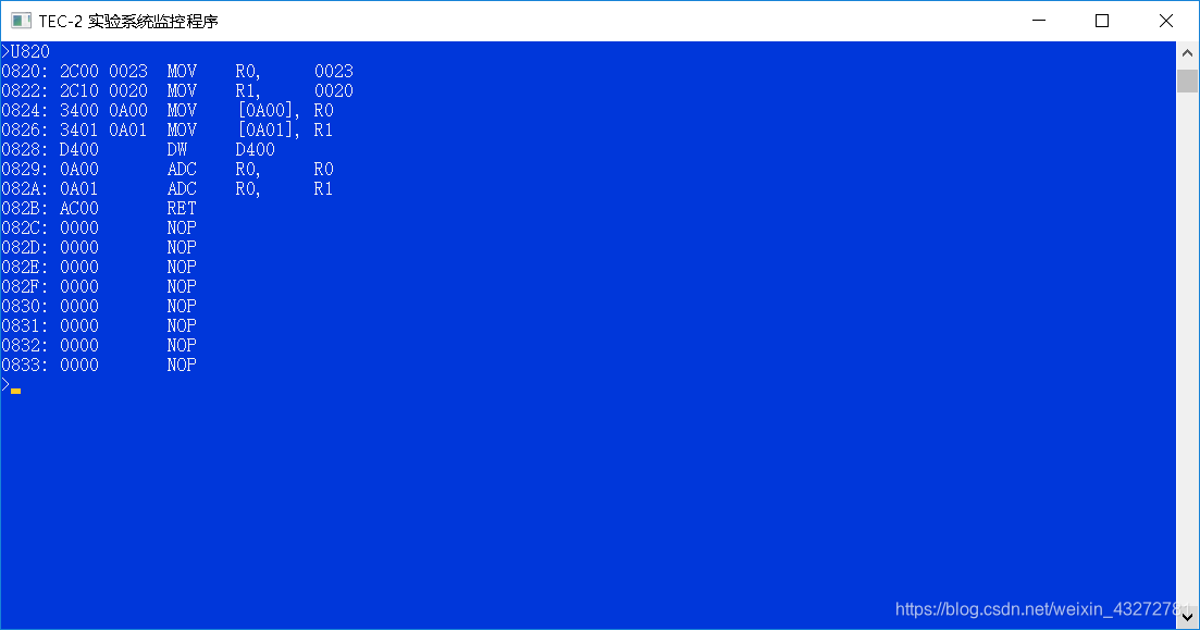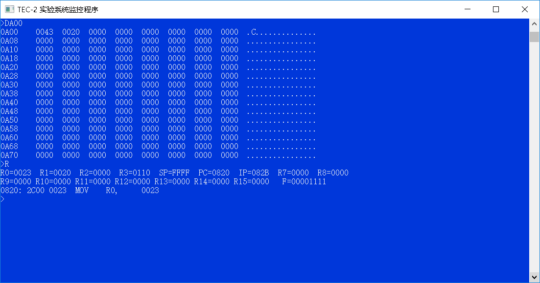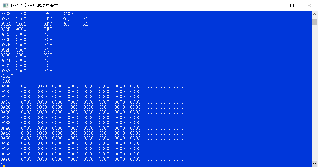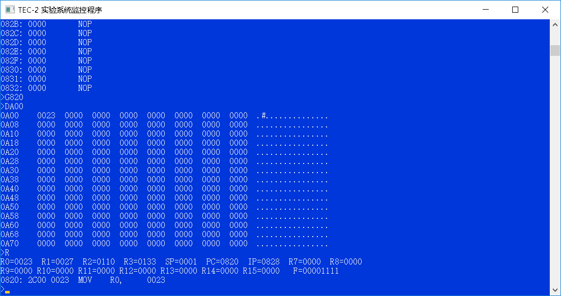 (二)用D命令查看输入的微码: