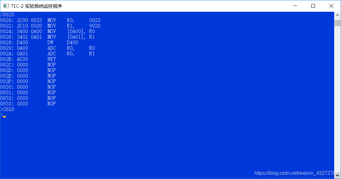0820: MOV R0,0023 将减数放到通用寄存器R0