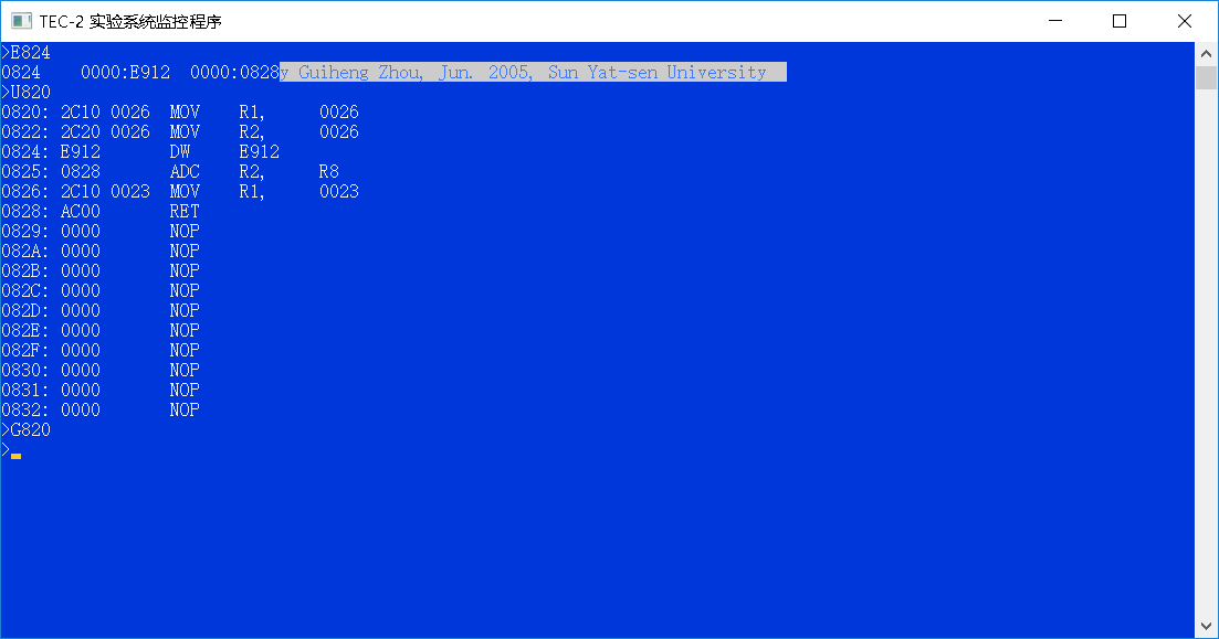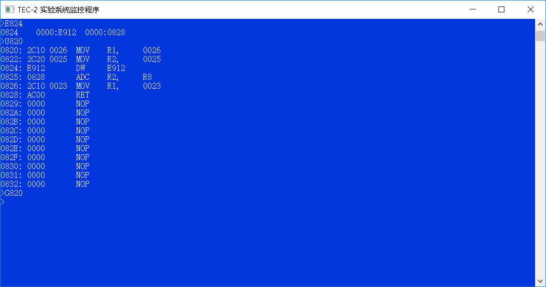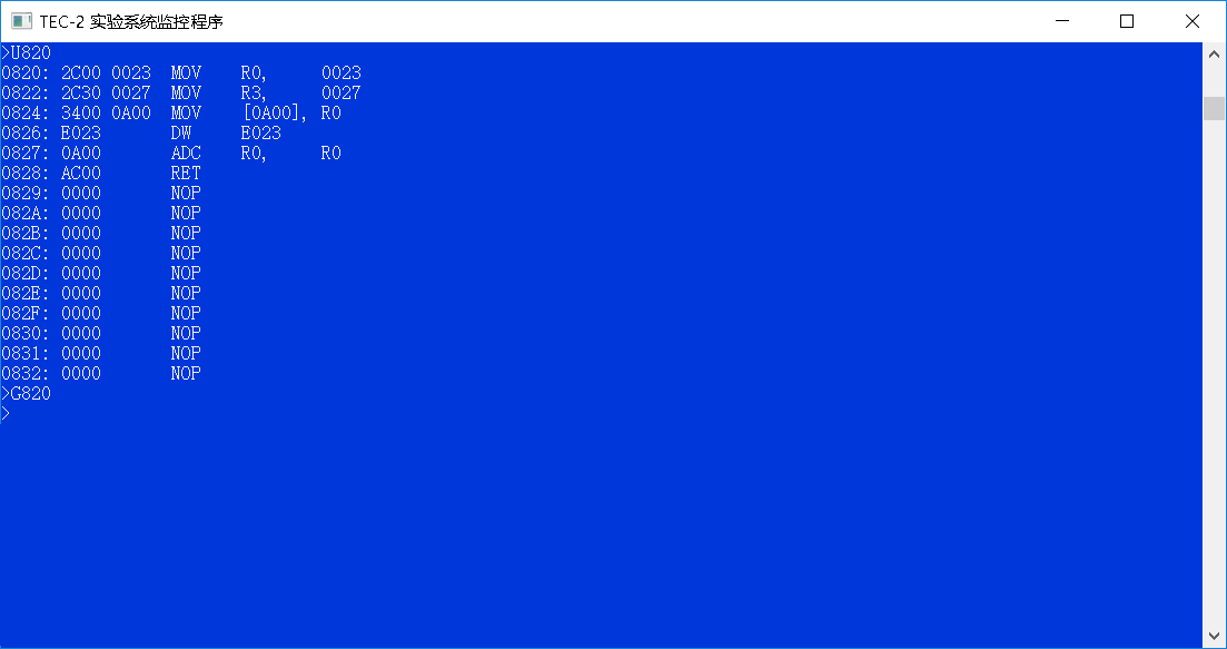 (四)用G命令运行加载微码的程序:
