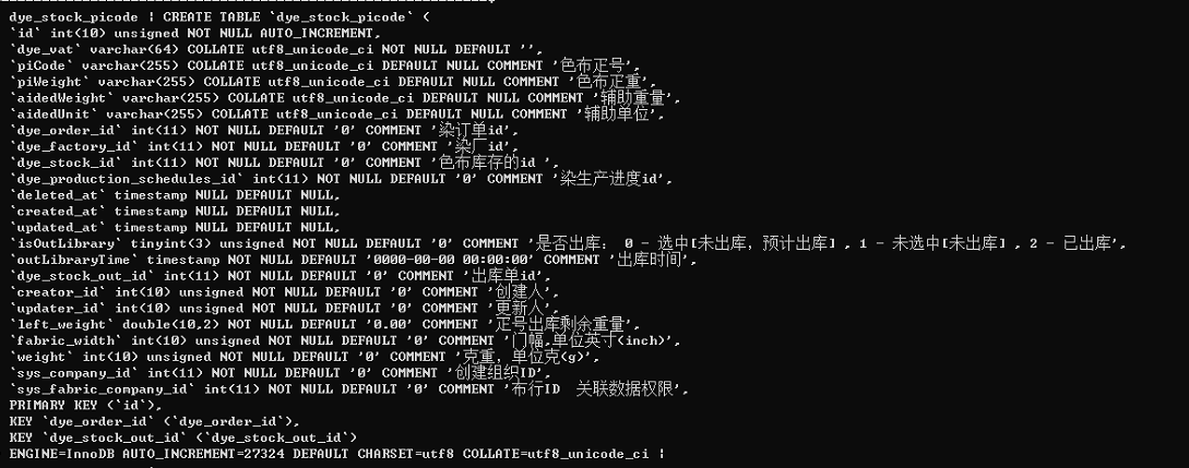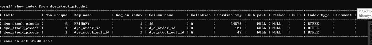 这里说下ken_len :32 是怎么来的,在utf8 下一个字符占3个字节,我们的索引dye_vat 是10个长度的,所以 3 * 10 ,加上varchar类型长度会保留1~2 字节。