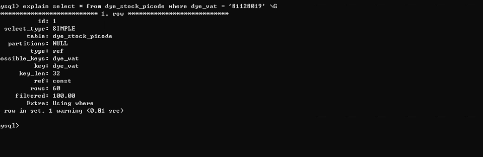 在生产环境中,经常需要使用到dye_vat这个字段来查询,那么这个字段该怎么建立索引比较合理呢?