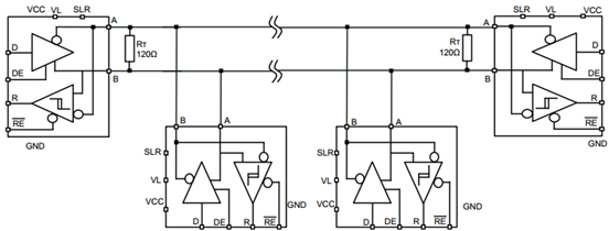 - SP3485E允许在同一总线上连接32个收发器。