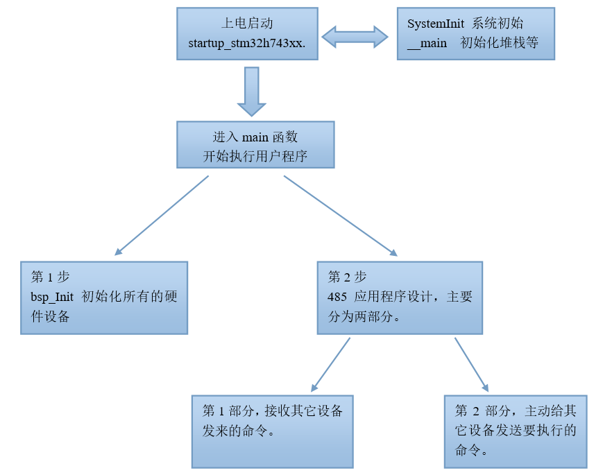 - 第2步,485应用程序设计部分,具体分为两个部分,接收命令和发送命令。