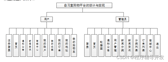 按照自习室购物平台的角色,我划分为了普通用户管理模块和管理员管理模块这两大部分。