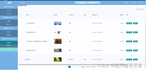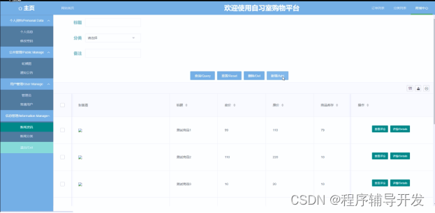自习室购物平台中的管理人员是可以对自习室购物平台内发布的商品进行维护和管理的,支持增删改查操作。界面如下图4-10所示。