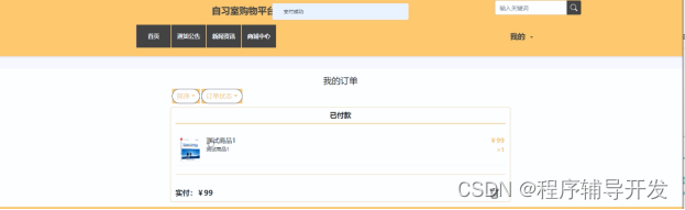 当用户点击“我的订单”链接后就进入自己购买的订单的界面展示,界面如下图4-7所示。