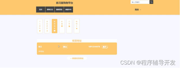 当用户点击“收货地址”右后,就回去显示出目前现有的地址,也可以添加新的地址,界面如下图4-5所示。