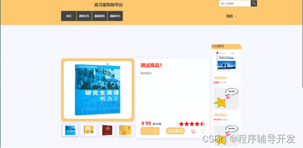 当访客点击了任意商品后将会进入该款商品的详情界面,可以了解到该商品的图片信息、商品信息、价钱信息等,同时可以对该商品进行加购+立即购买+收藏+点赞+评论,商品详情展示页面如图4-6所示。
