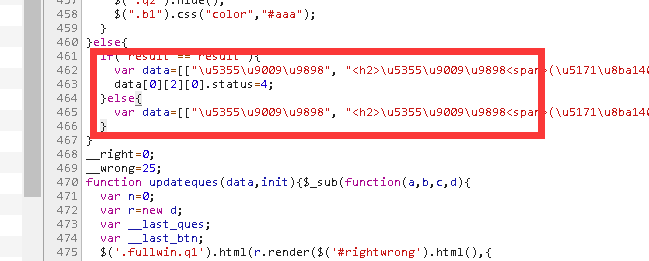 //获取考试信息var group=document.getElementById('group-data')var groupId=group.getAttribute("data-group-id")var examId=group.getAttribute("data-exam-id")var examQuestionNum=Number(group.getAttribute("data-questions"))//获取问题信息var questions=document.getElementsByClassName('question-board')var questionNum = questions.length//获取答案信息var ansElements = document.getElementsByClassName('the-ans')var ansNum = ansElements.lengthvar writeAnswer=(question)=>{let ansEle=question.getElementsByClassName(('the-ans'))[0]let pattern=/\u6b63\u786e\u7b54\u6848\uff1a(.*)/let ans=ansEle.children[0].innerText.trim()if(pattern.test(ans)){var answers=pattern.exec(ans)[1]let question_id=question.id.split('-')[1]let answers_arr=answers.split('、')answers_arr.forEach(answer=>{if(/[A-Z]/.test(answer)){let li_Eles=question.getElementsByTagName('li')let li_Ele=li_Eles[answer.charCodeAt(0)-65]let input_id=li_Ele.dataset.questionName+"_"+li_Ele.dataset.questionValuelet Ele=document.getElementById(input_id)if(Ele.type==="radio"){Ele.checked=true;}else if(Ele.type==="checkbox"){Ele.checked=true;}//页面方法choiceAnswerData($(document.getElementById('question-'+question_id)))}else{let input_name=question_id+"_" + (answers_arr.indexOf(answer) + 1)let Ele=$("[name='"+input_name+"']").get(0)if(Ele){Ele.value=answer.split('|')[0]//页面方法inputAnswerData($(document.getElementById('question-'+question_id)))}}})let questionTag=document.getElementById(question_id)questionTag.classList.add('done')} }var copyMobileAnswer=()=>{//获取问题信息questions=$('.question-board')var questionContainer=document.getElementsByClassName('exam-detial-container')[0]console.log(questionContainer)$.ajax({type : "GET",url:"https://www.yooc.me/mobile/group/"+groupId+"/exams/"+examId+"/subject?view_type=result",}).then(res=>{let data=JSON.parse(/var data=(.*);\n/.exec(res)[1])let num=0data.forEach(e=>{console.log(e[2]);e[2].forEach(q=>{let question=document.createElement('div')question.innerHTML=q.questionquestion.classList.add('question-board')question.id=questions.get(num).idconsole.log(question)writeAnswer(question)question.id = 'answer-' + question.id.split('-')[1]questionContainer.insertBefore(question,questions.get(num++))console.log(num)})})})}copyMobileAnswer()
