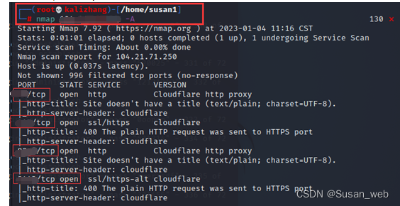 3. 打开kali,用nmap跑一下,查到一共4个端口,如下所示: