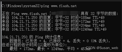 - 用ping 加上域名的的方式,找到真是的IP地址,如下:
