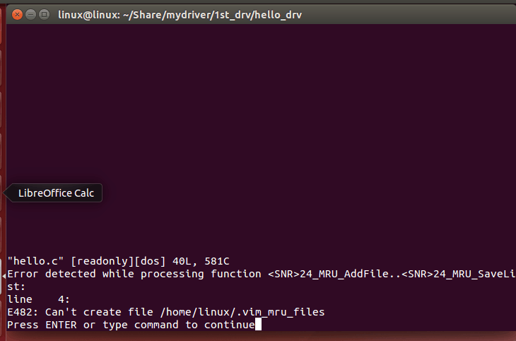 E482: Can't create file /home/linux/.vim_mru_files Press ENTER or type command to continue问题解决方案
