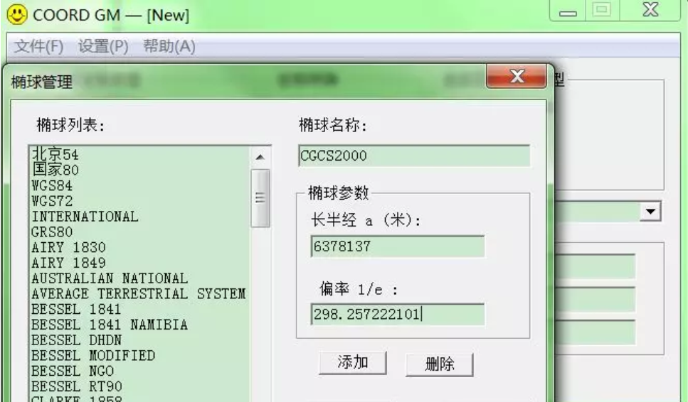 COORD软件里没有国家2000坐标系椭球,需要在椭球管理中添加CGCS2000。