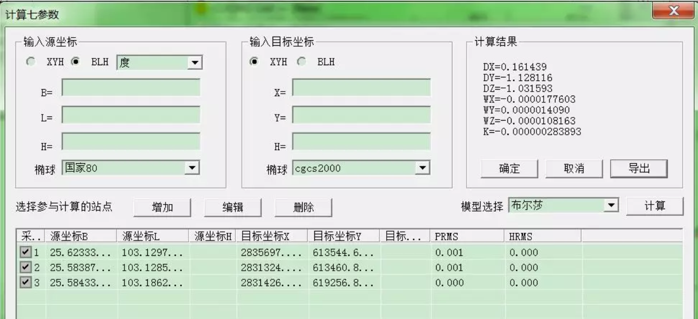 5.在COORD软件中,七参数的坐标:平移参数单位是米,旋转参数单位是弧度。