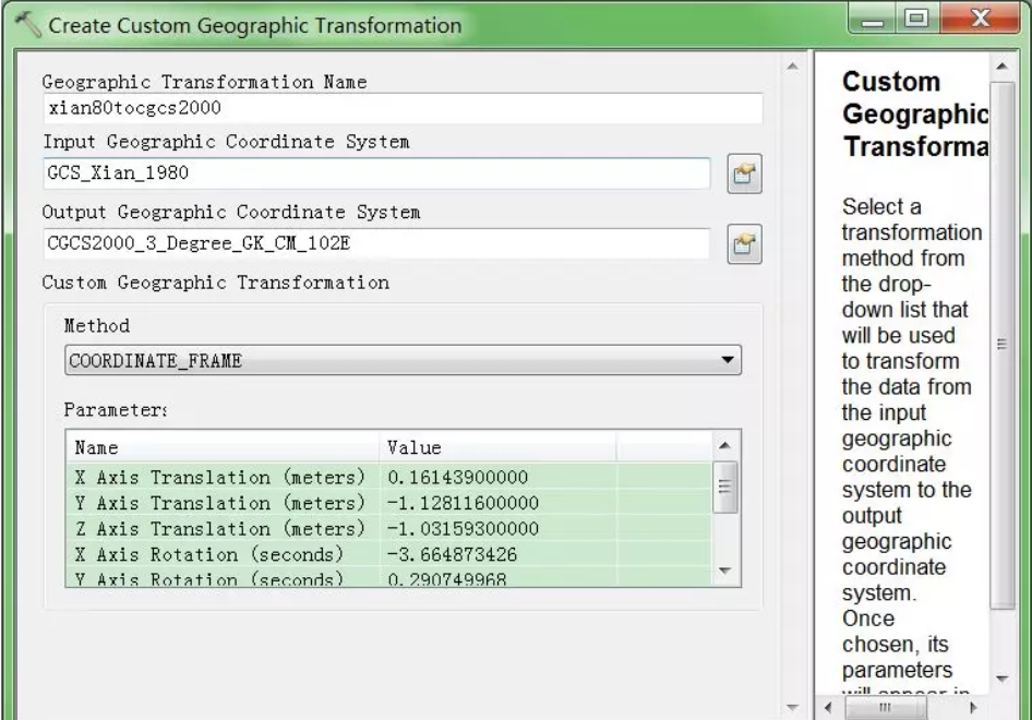 经过单位转换的七参数就可以直接在ArcGIS中使用了。