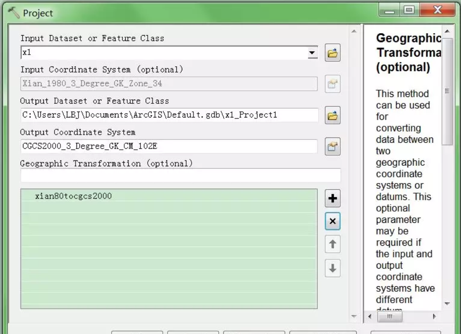4.在ArcGIS中七参数的坐标:平移参数单位是米,旋转参数单位是秒、尺度参数的单位是百万。