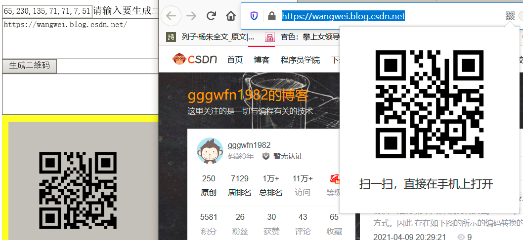 有图有真相。下面给出生成的二维码的截图为证。软件生成的二维码与firefox