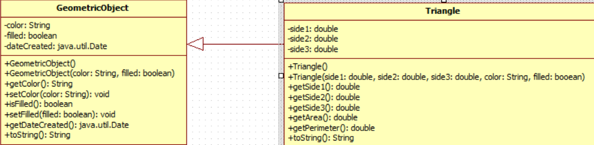 package p11;public class GeometricObject {private String color = "white";private boolean filled;private java.util.Date dateCreated;public GeometricObject() {dateCreated=new java.util.Date();}public GeometricObject(String color, boolean filled) {dateCreated=new java.util.Date();this.color=color;this.filled=filled;}public String getColor() {return color;}public void setColor(String color) {this.color=color;}public boolean isFilled() {return filled;}public void setFilled(boolean filled) {this.filled=filled;}public java.util.Date getDateCreated() {return dateCreated;}public String toString() {return "created on " + dateCreated + "\ncolor: " + color+ " and filled: " + filled;}