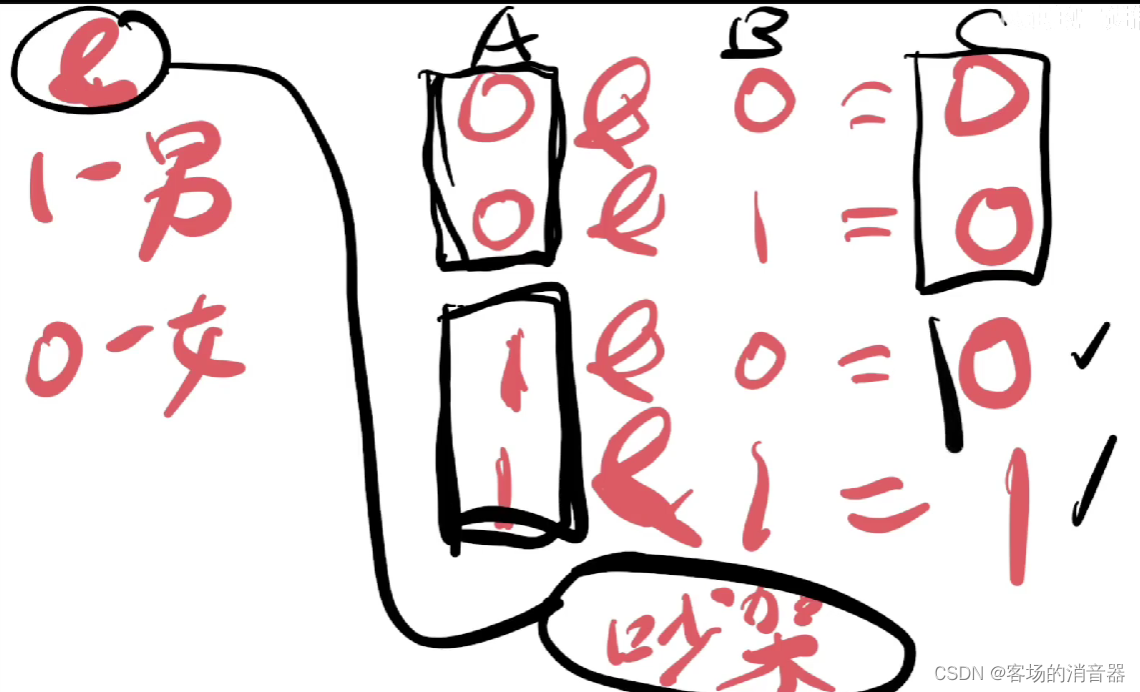 就把二进制中的“1”看成男人,“0”看成女人。&运算就看成男人和女人吵架,根据常识“男人和女人吵架基本上都是女人赢”,可得以下结论:0 & x–0;1 & x–x。