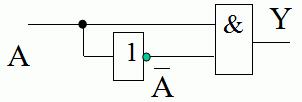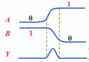(2)同一信号经不同路径到达终点的时间有先有后的现象(或者不同信号变化不同步)。例如y=A,如下图:
