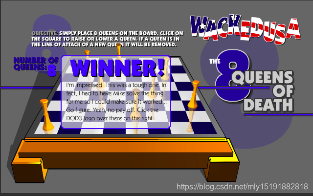 在看这篇博文之前,大家可以先玩玩8皇后游戏,在此附上游戏连接点此开始游戏之旅!