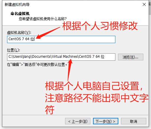 6.根据自己的习惯命名虚拟机,主要是简单易记就行。