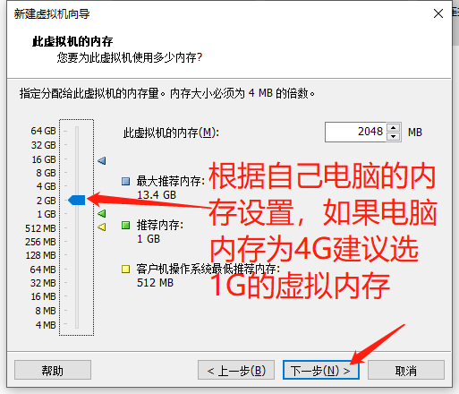 建议电脑内存为4G的选1G虚拟机内存,8G可以选择2G