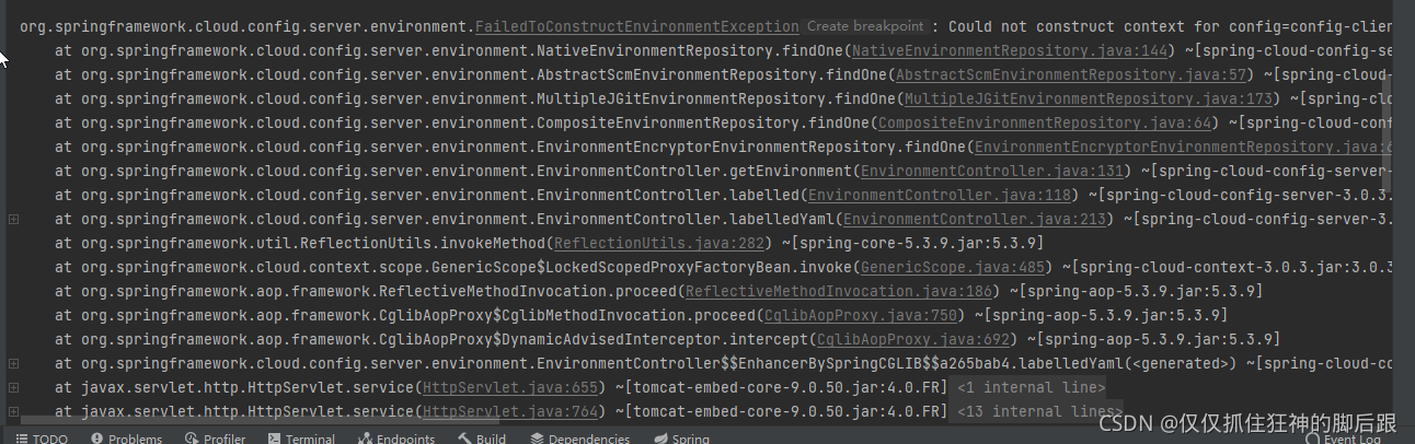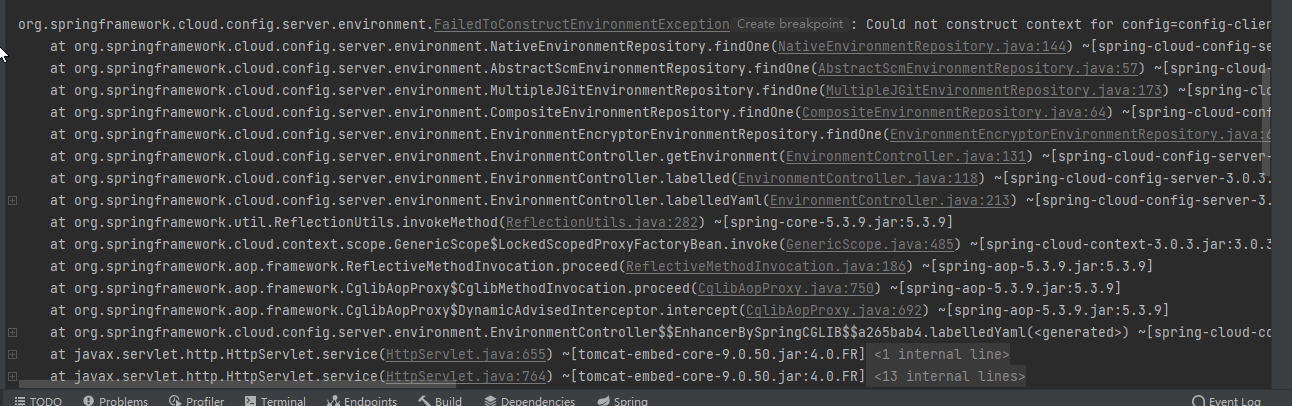后来将错误分开一看:一行那么长的报错中有个chartset,猛然惊醒,应该是config-client.yaml文件编码问题,在本地git文件夹中编辑时加了中文备注