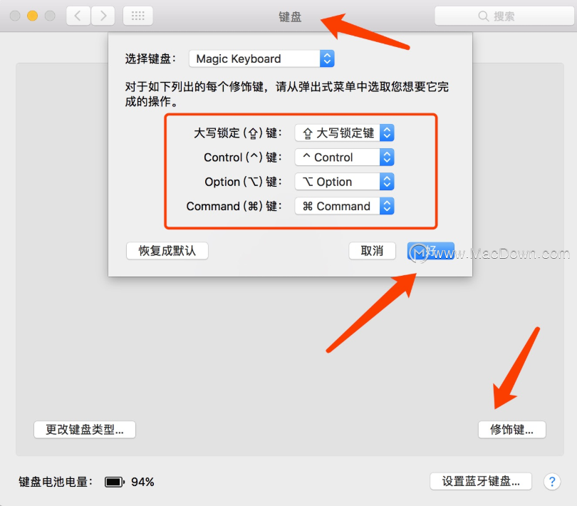 不必重新学习键的位置,而使用“系统偏好设置”中的“键盘”面板重新分配修改键,从而可以保留已经拥有的肌肉记忆。