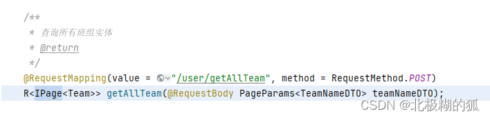 其实仔细看黄底的这句报错,已经把错误原因很清楚的摆上来了,意思就是苞米豆下的这个IPage类型异常,然后再去到代码中: