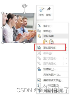 如果选中模版中的图片,单击右键不会出现“更改图片”选项,就请使用以下方法。