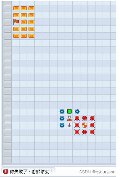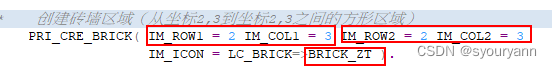 * 创建红旗上方保护墙PRI_CRE_BRICK( IM_ROW1 = LV_COOR-ROW - 2 IM_COL1 = LV_COOR-COLIM_ROW2 = LV_COOR-ROW - 1 IM_COL2 = LV_COOR-COL + 2IM_ICON = LC_BRICK=>BRICK_GM ).